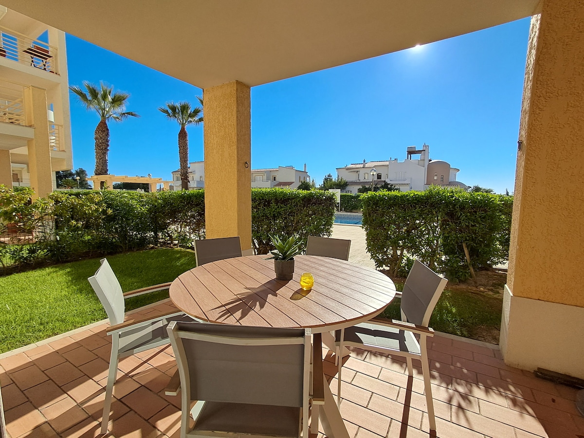 This brand new fully furnished 1-bedroom apartment in a peaceful neighborhood of Albufeira, Portugal, is located within walking distance to the Old Town, beaches and Marina. The apartment is a part of a famous resort-type complex of Encosta Da Orada, which is perfectly suited for family and couples’ vacation. Our apartment has a spacious terrace with magnificent views of the Atlantic Ocean, which are equipped with 2 sun loungers, dining tables and 4 chairs. The maximum occupancy for rental is 5.