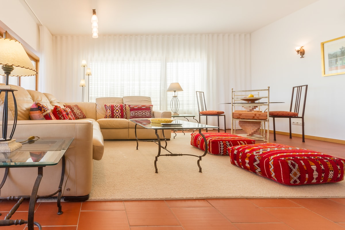 Enjoy far-reaching views from this new, spacious apartment set up in the hills above Lagos. Relax on the terrace, lounge in the comfortable living room, and sleep well in a king-sized bed! Conveniently located between Luz and Lagos, the apartment is 3-4 km to the main beaches,city center and Markets. This is an ideal place for couples looking for quiet and relaxation, or a home base to explore the area. A car is essential; there is no public transportation to this picturesque location.