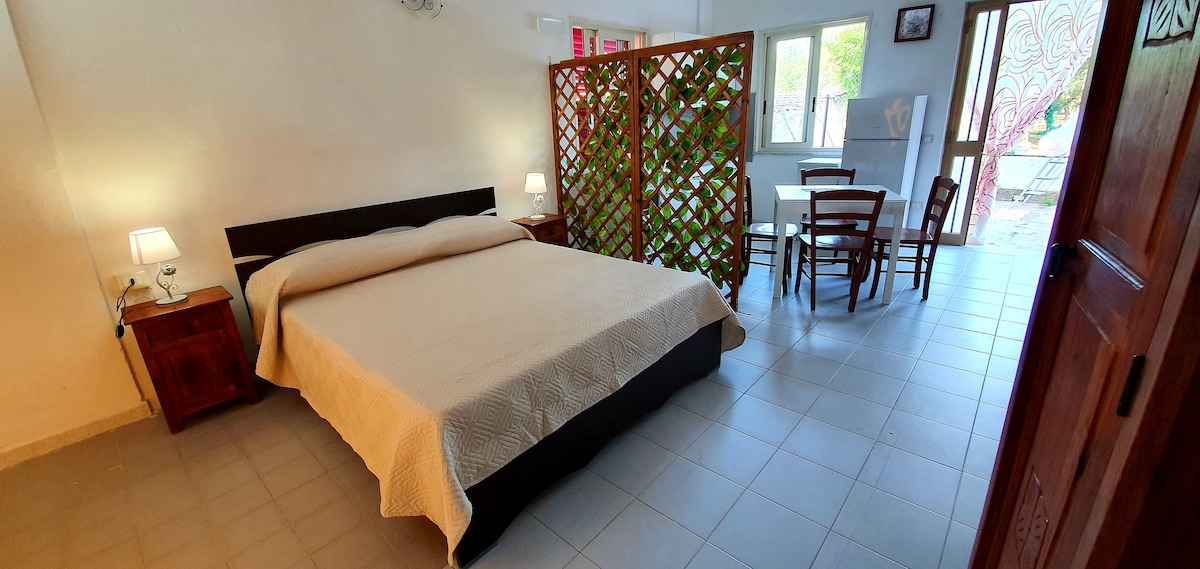 La Casa con ingresso indipendente è parte di uno Stabile "Rurale" di inizio '900. Bagno privato, letto matrimoniale, divano letto, frigo da camera, TV, WI-FI ed una romantica veranda con "vista da cartolina" dove poter sorseggiare un drink, un infuso, fare colazione o addirittura prendere ispirazione ed usarla come "workstation". L'accesso è agevole dalla strada o dal parcheggio, (eventualmente disponibile), attraverso il giardino di limoni, la corte privata e pochi scalini.