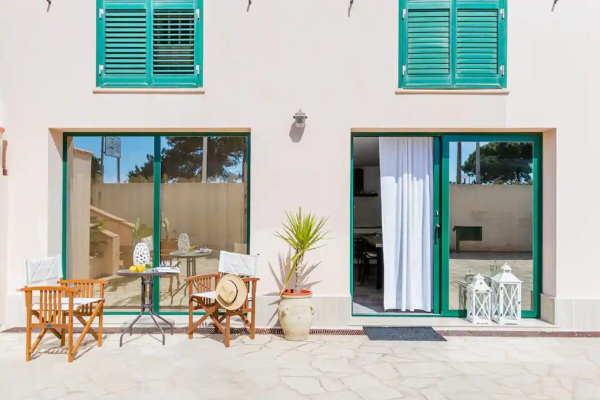 Antica Villa del 1908, costruita per diventare una fabbrica di essenze di limoni e arance,che crescevano nel vasto agrumeto di proprietà della villa. Successivamente ristrutturata, la villa, è stata suddivisa in due case di 110 mq l’una. È infatti possibile prenotare entrambe le case che possono ospitare fino a 8/9 persone. Vi è un’intima corte interna e un ampio giardino esterno tutto a disposizione degli ospiti.