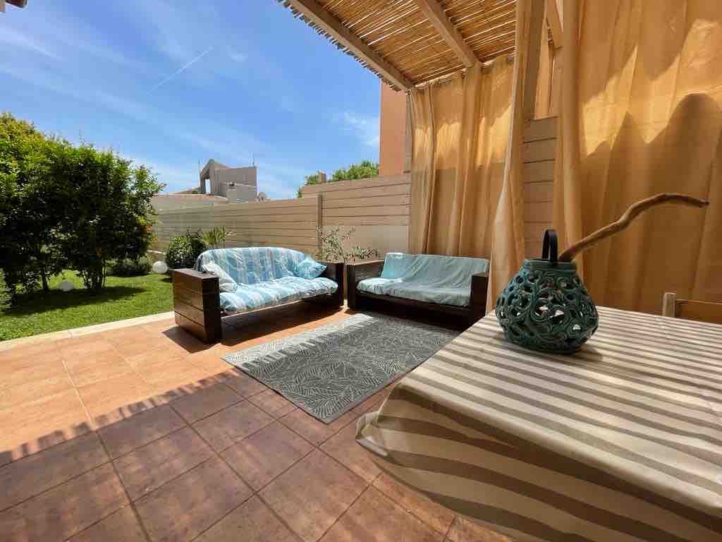 Appartamento al pian terreno con accesso diretto sulla bellissima spiaggia di cala Ginepro, a 20 m. dalla battigia, composto da tre camere da letto, cucina fornita di tutto il necessario, bagno, aria condizionata, lavatrice, internet Wifi, zanzariere in tutte le finestre, giardino privato, tre verande arredate, garage/ripostiglio, barbecue, parcheggio privato e doccia esterna