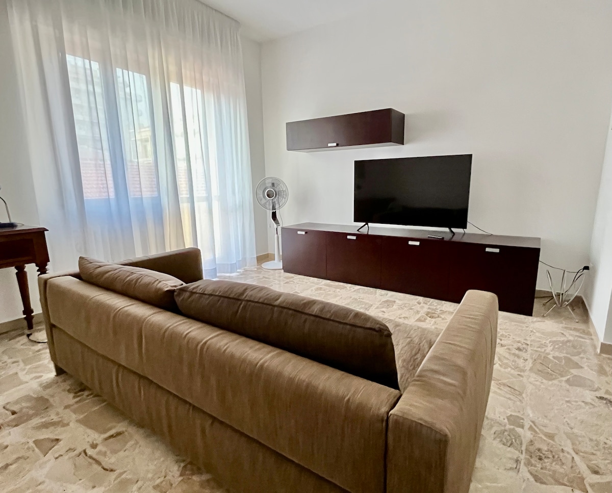 Independent flat in the heart of Ortona with double bed, private bathroom, living room, sea-view terraces and free parking. Only two minutes walking to Basilica di San Tommaso, Castello Aragonese, Passeggiata Orientale, Corso Vittorio Emanuele, Teatro Vittoria, pedestrian bicycle path on Costa dei Trabocchi. In few minutes you can get to the best beaches Lido Riccio,Lido Saraceni, natural shore Ripari di Giobbe and Acquabella, Cimitero Canadese, the Harbor of the city and the turistic pier.
