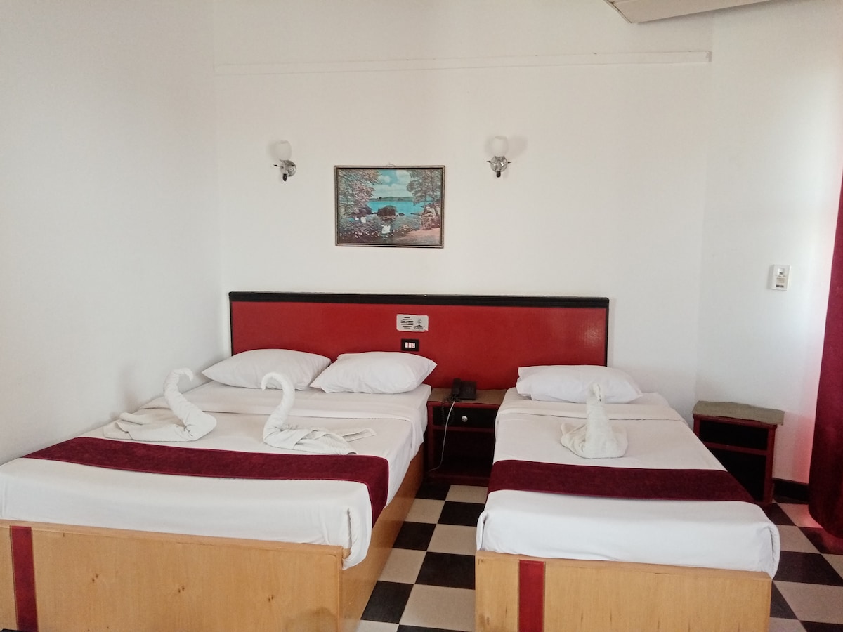 Single Room at Tiba Rose – Half Board Included Enjoy an unforgettable stay in our cozy double room at Tiba Rose Hurghada with breakfast & dinner included (Half Board) 🍽️. Free Wi-Fi 📶, swimming pool 🏊‍♂️, 24-hour reception 🛎️, daily housekeeping 🧹, luggage assistance 🧳, elevator 🛗, fun beach access 🏖️, luxurious amenities ✨, on-site dining 🍴, easy access to attractions 🏝️, and friendly staff 😃 for a memorable stay.