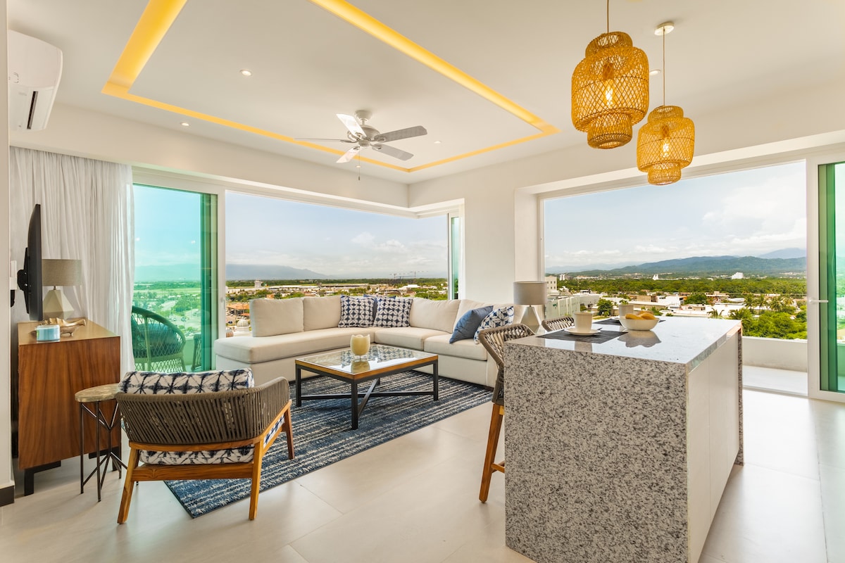 Welcome home to your MODERN 7th FL condo. Your Rooftop infinity pool w/ a BREATH-TAKING VIEW of the sea and cruise ships: simply stunning! Our space offers all the convenient amenities. Rooftop BBQ or gym with a view? You got it! All in a perfect location; only a 12-min walk to the beach, restaurants, bars, groceries, malls, cinema, and hospital. The Malecón, Romantica, and Marina are a quick 10-min drive away! YOUR dream getaway with stunning rooftop views right here in beautiful PV.