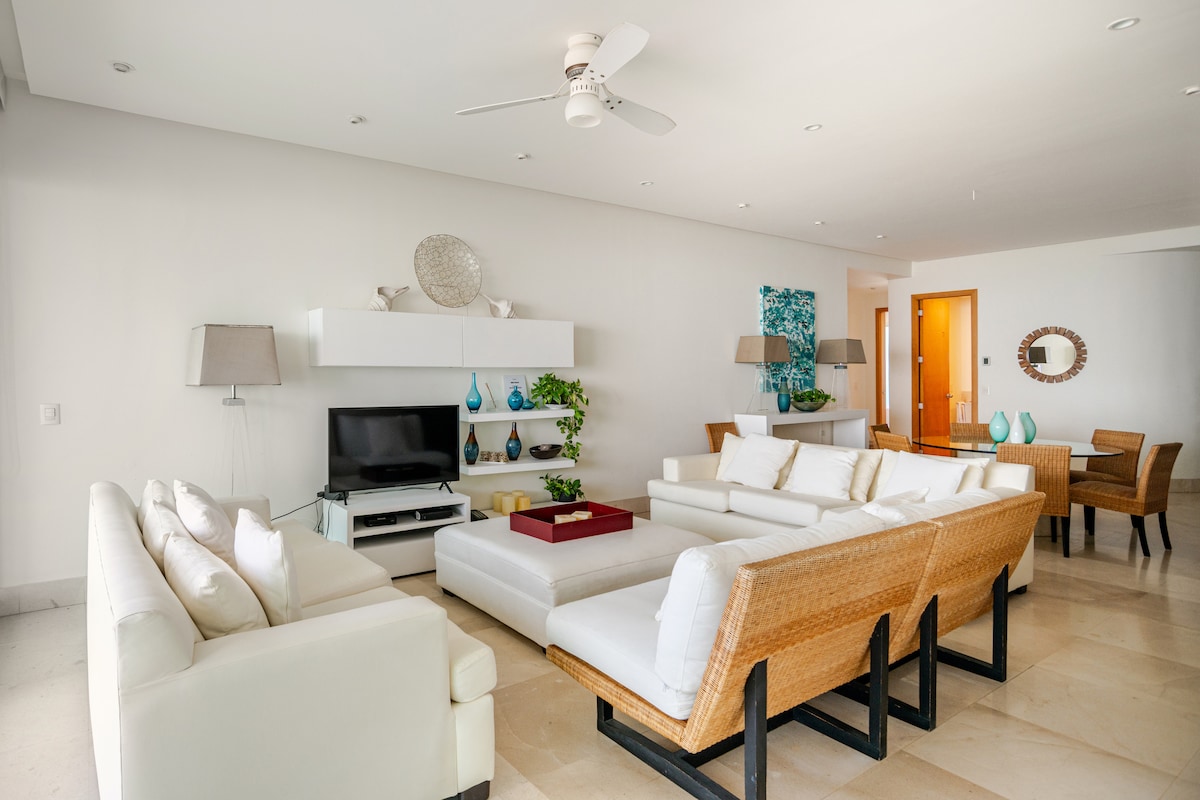 Condominium on the 12th floor. Expansive view of the ocean and river walk. Gorgeous amenities include 5 pools including, 5 hot tubs, tennis courts, gym, spa, onsite restaurant and room service. 24/7 security & safe. Spacious balcony from living room and bedroom overlooks the ocean. Includes covered parking, electricity, air conditioning, hi speed wifi, 2 large smart TV's, housekeeping every 2 weeks. Close for walking to grocery, restaurants, clubs, trail. Courtesy pick up from airport.
