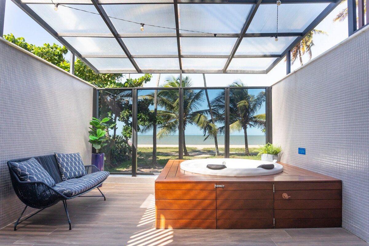 Relaxe no paraíso neste charmoso Studio pé na areia, com jacuzzi privativa aquecida, vista espetacular do mar! Ideal para casais, viajantes solo ou quem busca tranquilidade com conforto. O Studio oferece tudo para uma estadia inesquecível, perfeito para quem quer acordar com o som das ondas e curtir o melhor da praia com praticidade, privacidade e estilo. Permita-se desfrutar de uma nova lua de mel neste local único e encantador.