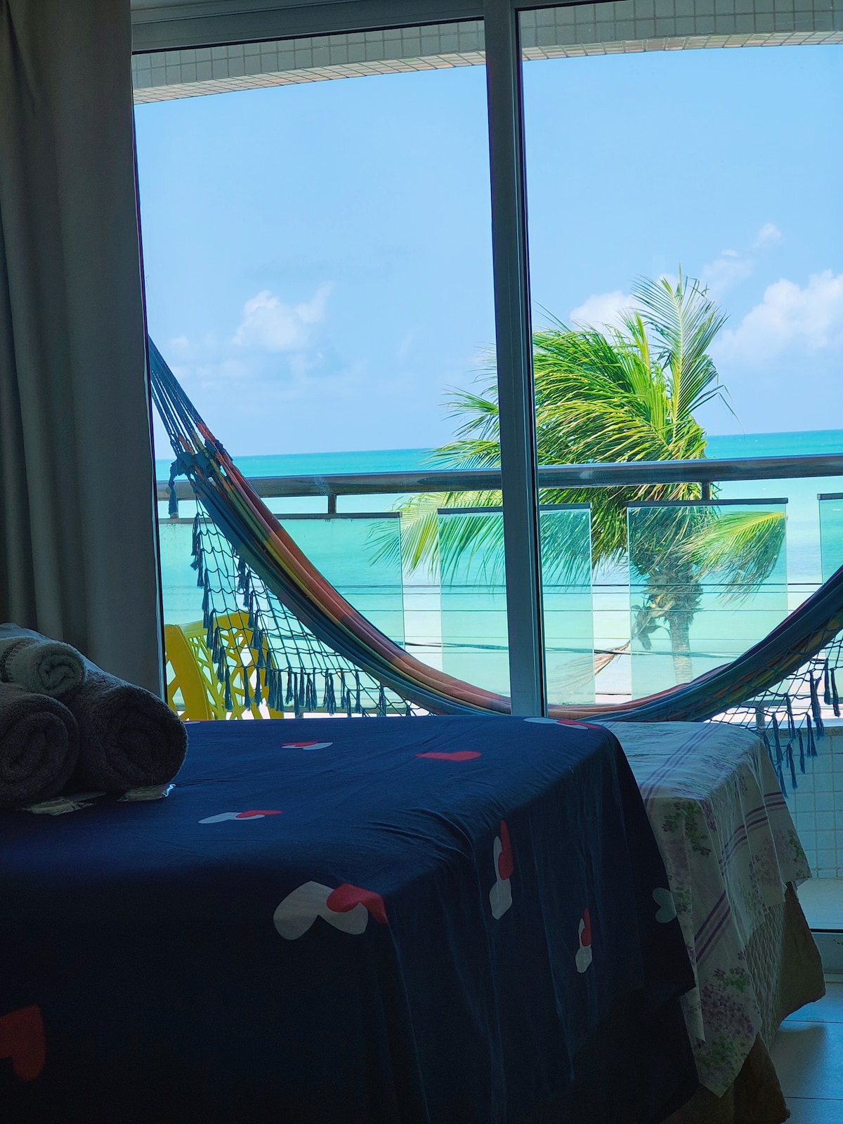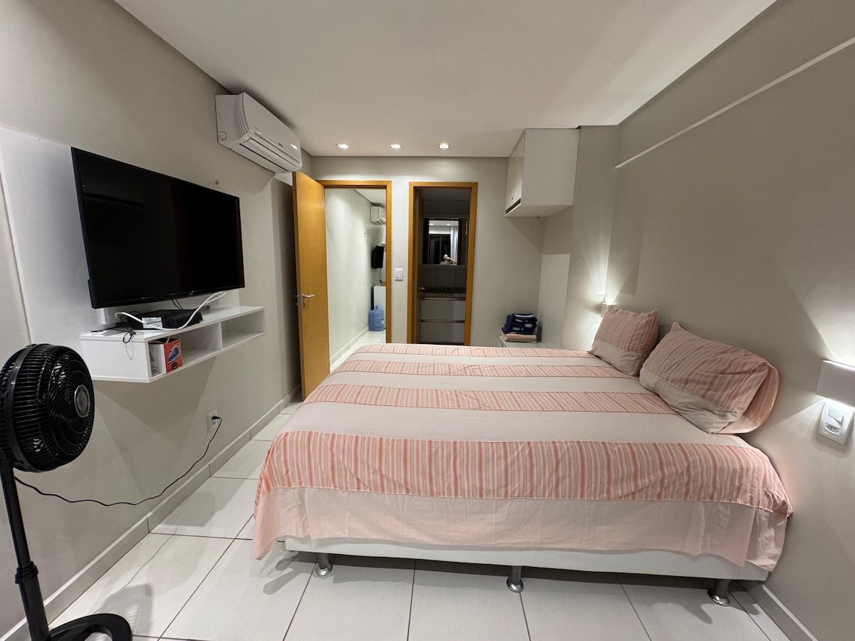 The apartment features split air conditioning, electric shower, Smart TV, Airfryer, mini-fridge, coffee maker, toaster, microwave, blender, utensils for quick snacks, and rotating parking. The apartment does not have a stove. Located in the Flat Israel building on the beachfront of Tambaú, next to the Varandas de Tambaú food court, next to the craft fair, and a 5-minute walk from the boat departures to the natural pools of Picãozinho/Seixas.