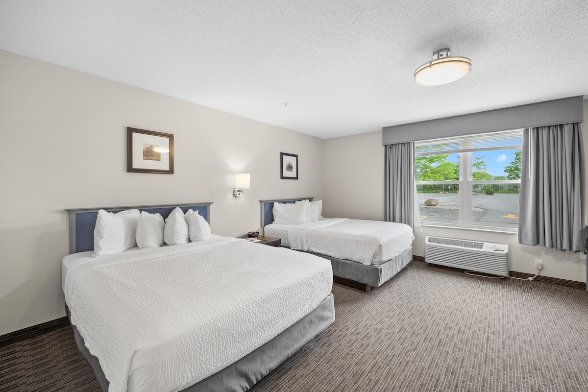 Walking into Independence Stay of Marinette you will notice our welcoming staff and open layout of our lobby. Our goal is to make you feel as at home as possible with full size fridge in every room. A two burner cook top along with a full size microwave. in this room you will see two queen size beds, a spacious dresser, mounted flat screen T.V., Along with we provide dishes, silverware, pots, pans, and cooking utensils. We hope you choose to stay with us!