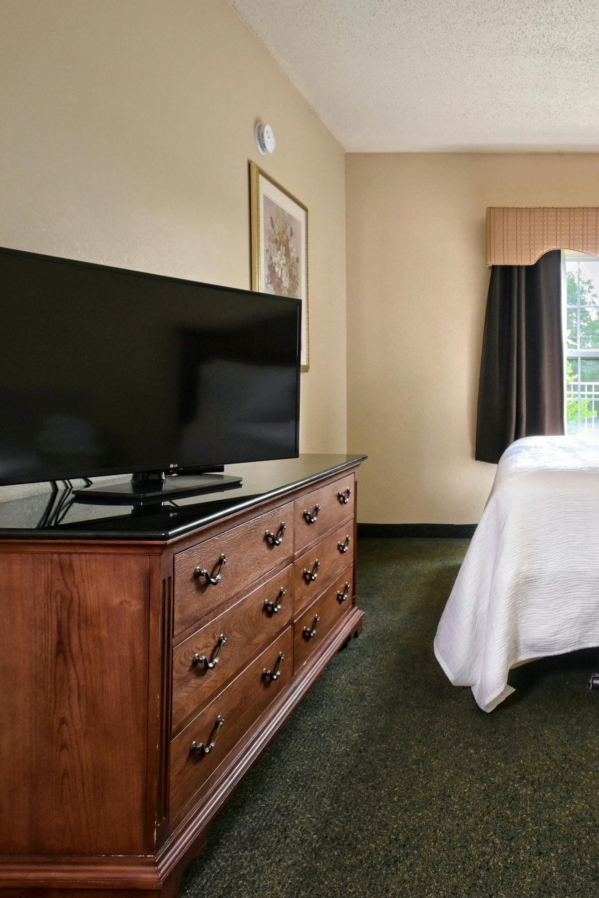 Walking into Independence Stay of Marinette you will notice our welcoming staff and open layout of our lobby. Our goal is to make you feel as at home as possible with full size fridge in every room. A two burner cook top along with a full size microwave. in this room you will see a one bedroom suite with a king bed (room has a door for privacy) and a pull out couch, a spacious dresser, mounted flat screen T.V., Along with we provide dishes, silverware, pots, pans, and cooking utensils.