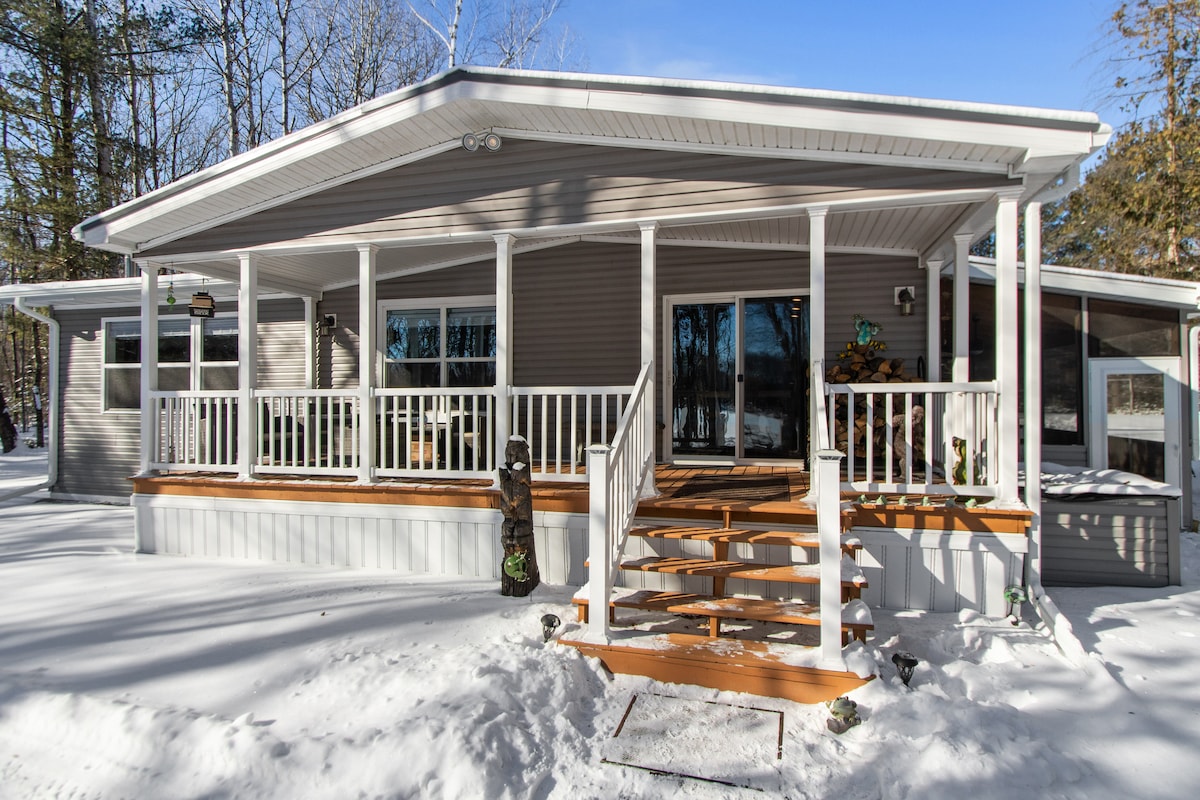 This special place in Beecher Wisconsin is close to everything, making it easy to plan your visit. Located on a private airport (WS25) for fly in guest, adjacent to ATV/Snowmobile trails, great restaurants, golf. and only 1.5 miles from the Menominee River for fishing, Kayaking, as well as the Four Seasons Resort. For more family fun, skiing is only 30 minutes away at Pine Mountain Ski. After all that fun come back to relax in the private six person hot tub.