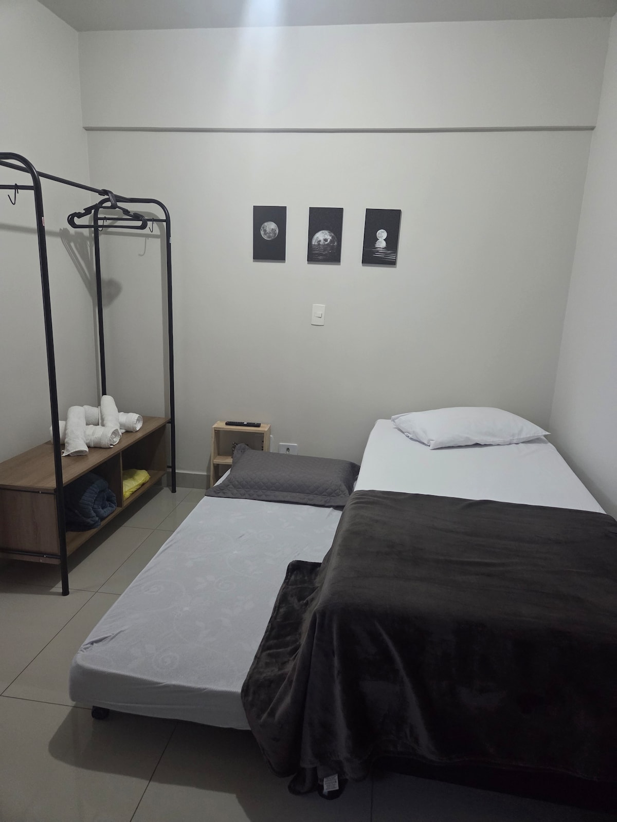 Kitnet inteira, tipo Studio, com ar condicionado, muito bem localizada, perto da UEM, Novo Centro, mercadão, mercados e padarias. Possui 01 cama box de casal, 01 sofá cama, roupeiro, bancada de trabalho com cadeira, mesa com cadeiras, tv 32 com tv box, cozinha completa. Prédio tranquilo e familiar, com Wi-Fi e lavanderia.Fornecemos roupa de cama e banho e mantas de microfibra. Garagem coberta para carros pequenos e médios.