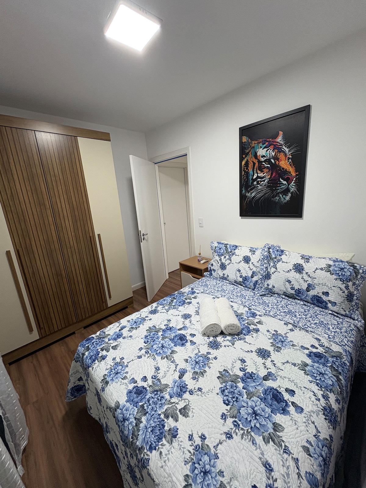 Apto. Novo, decorado e moderno, ampla janela com ventilação (e ar condicionado) e uma linda vista. 3 quadras da UEM, próximo a restaurantes, bares, supermercados (perfeito pra você que vem para vestibular, eventos ou convenções) 6 min do MERCADÃO ( centro com os melhores restaurantes da cidade) e estádio Willie Davies. Cozinha completa (geladeira, fogão, cafeteira, micro-ondas, chaleira...) Banheiro completo com secador e ferro de passar! Sala completa Vaga de garagem Roupa de cama e banho