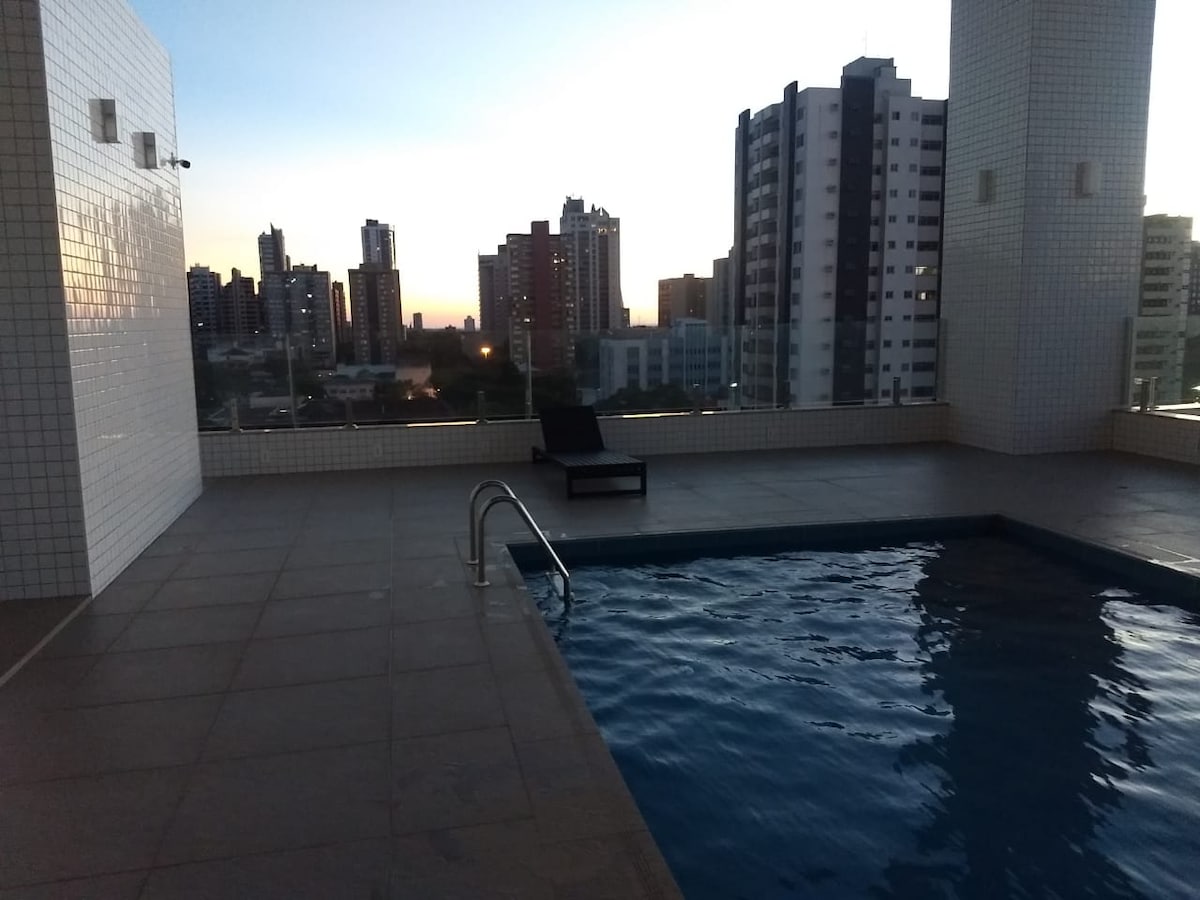 Localizado no novo centro de Maringá, entre o shopping av. center e o no novo terminal modal. Próximo também de grandes hipermercados, e ao grande centro gastronômico de Maringá, o mercadão municipal e o estadio willie davids. Apartamento studio, ambientes integrados, confortável, com ar condicionado, netflix, wifi e cozinha completa, maquina lavar roupas. Garagem no subsolo. Piscina em manutenção até 28/02/2023.