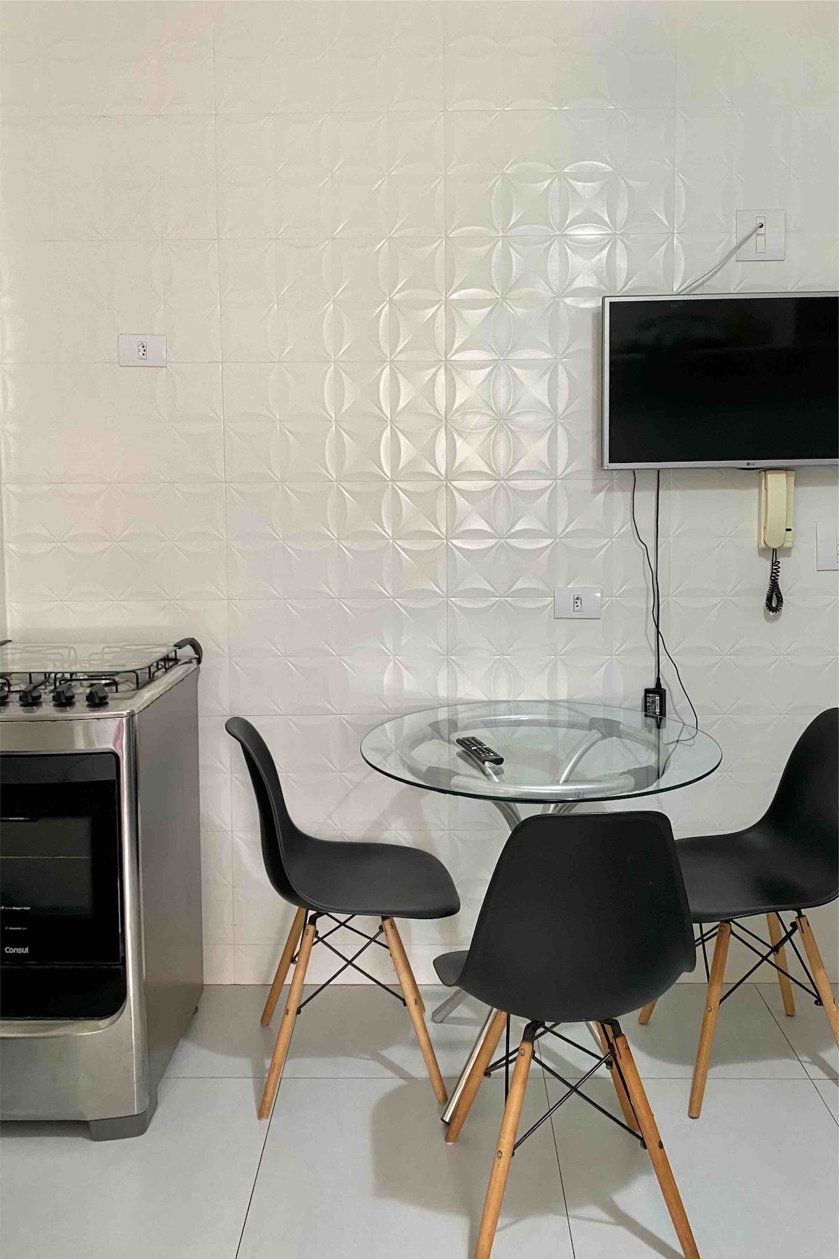 Kitnet inteira, tipo Studio, com 01 cama box de casal e 01 sofá cama, roupeiro, bancada de trabalho com cadeira, smart TV 32, ventilador de teto, ventilador de mesa, cozinha completa, mesa com cadeiras. Fornecemos roupa de cama e banho, mantas de microfibra. Perto da UEM, Mercadão municipal, Estádio, supermercados, restaurantes, fácil acesso a shoppings, e ao novo centro, ótima localização. Prédio tranquilo e familiar com lavanderia e Wi-Fi . Garagem para carros pequenos e médios.