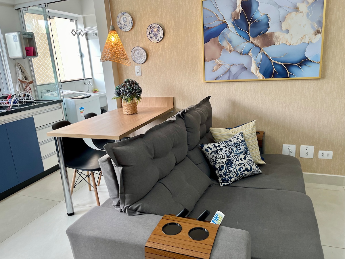Apartamento perfeito para você que gosta de muito conforto, bom gosto na decoração, uma boa estrutura à disposição e praticidade. O espaço de cerca de 70m², além de ser todo planejado, com ambientes e iluminação super aconchegantes, ainda conta com equipamentos modernos, wi-fi e ar-condicionado nos quartos e sala. Além do apartamento, você também terá acesso a toda a estrutura do condomínio que, recebe o título de clube residencial. Temos uma vaga de garagem a disposição.