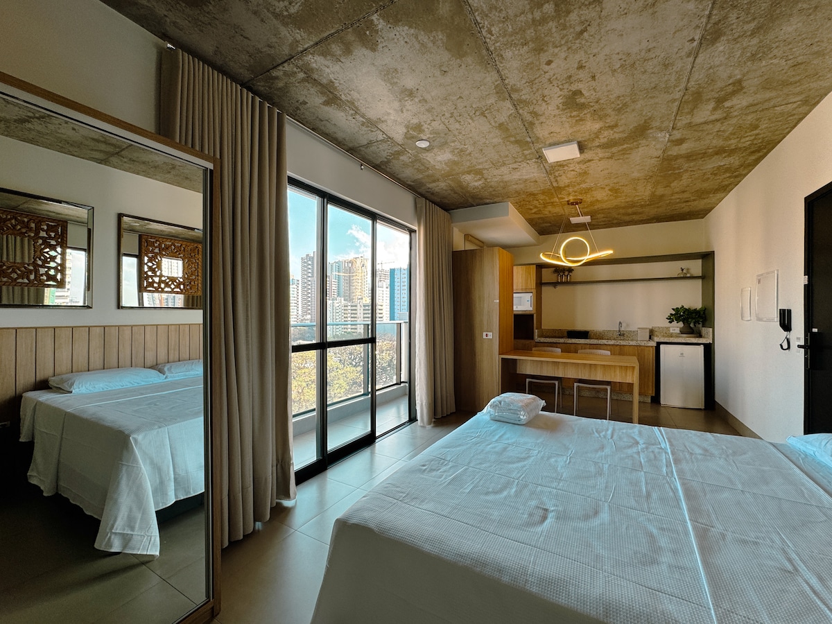 Aproveite esse Studio que é a escolha ideal para casais em busca de um refúgio romântico ou para aqueles que apreciam a própria companhia. Estrategicamente localizado na Avenida Getúlio Vargas, este espaço oferece uma fusão perfeita entre estilo e praticidade, onde cada detalhe foi cuidadosamente pensado para garantir uma experiência inesquecível na cidade maravilhosa. O Espaço conta com uma cama Queen e um Sofá Cama, tamanho casal, comportando no total, 4 pessoas, entre cama e sofá cama.
