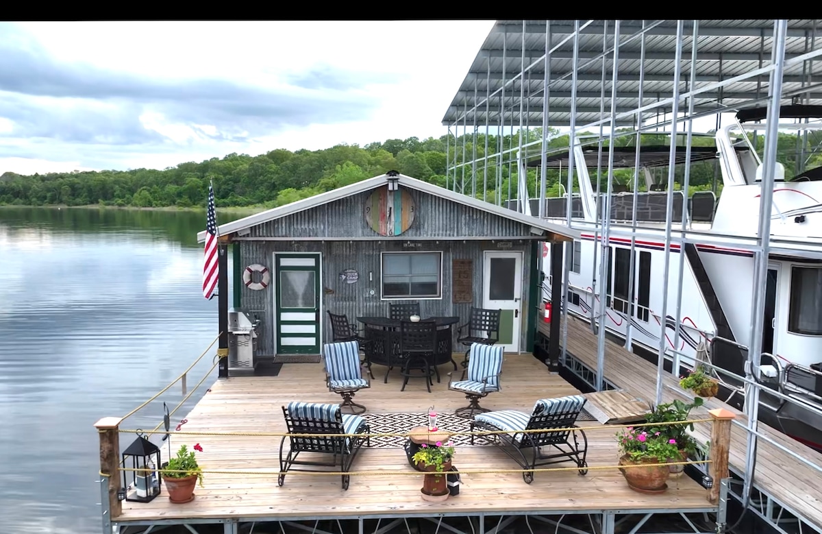 Escape to one of the most unique stays on Bull Shoals Lake a floating home with unbeatable water access & lake views. 2 comfortable queen beds, 1 full bath with walk-in shower. Open Living Area with comfortable seating & a fully-equipped kitchen. Large Floating Deck with outdoor dining, lounge chairs, Bluetooth radio & a gas grill. Is securely anchored and gently rocks with the water. WiFi is available via the Marina, but may not be dependable at times. Park your boat at the deck. Peel, AR