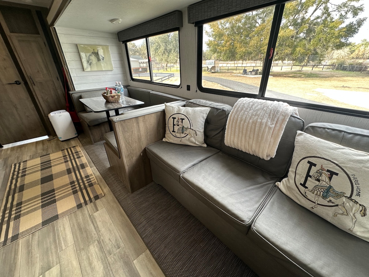 Enjoy the retreat of this tiny home tucked away in the back of a 50-acre gated equestrian farm in north Ocala. Couples have access to a private outdoor shower, can walk among the peaceful garden trail, and enjoy the presence of resident horses, goats, and farm cats. Guests will be greeted with a welcome packet containing organic, natural products made right here on the farm! Whether a quick weekend trip or an extended stay, book your farm retreat today!