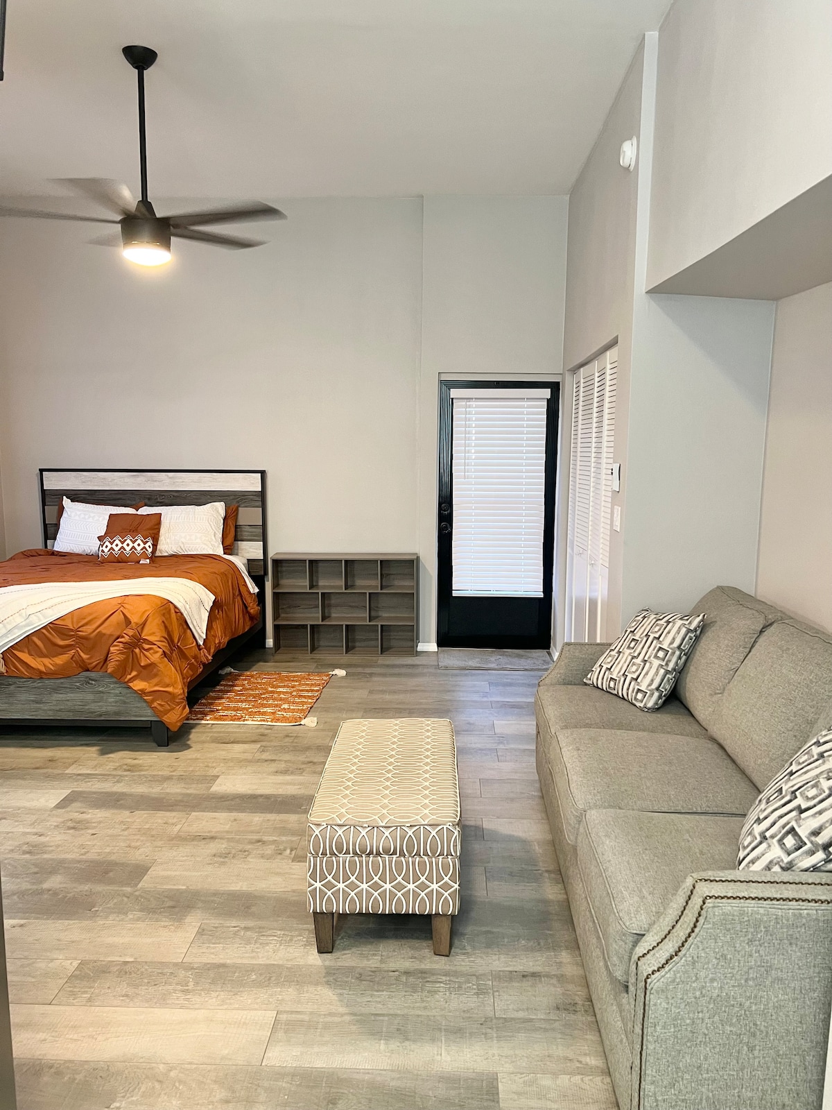 Newly remodeled Queen bed & full sleeper sofa - sleeps 4 just 12 blocks to downtown Ocala 8 miles to the WEC ( World Equestrian Center). Detached from the main house w/washer dryer, fenced in patio, 1 parking space, full kitchen. Sorry no pets. Not baby proofed. Gigablast high speed internet. Air-Bnb is separated from the main house but on the same property. Please do not go in the back yard of the main house. Security Cameras records the outside gravel parking space.
