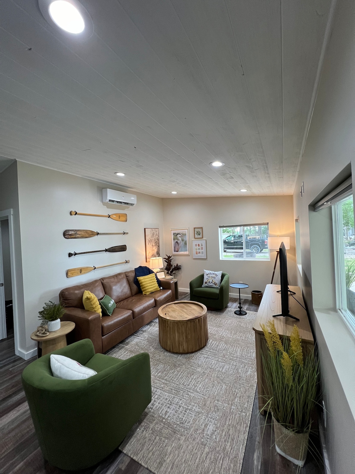 Escape to our stylish lakeside retreat on Lake Centralia! Enjoy a private dock, boat launch, large fire-pit + option to bring up to 3 campers. Our new cabin blends nostalgic camping vibes with modern comfort. Use kayaks, lily pad, 3-person tent, & sleeping bags for outdoor fun. Cozy up by the firepit and savor stunning lake views. Bring your own boat or campers with 3 additional sites with power and water hookups welcome family and friends. Make lasting memories—book your peaceful retreat today!