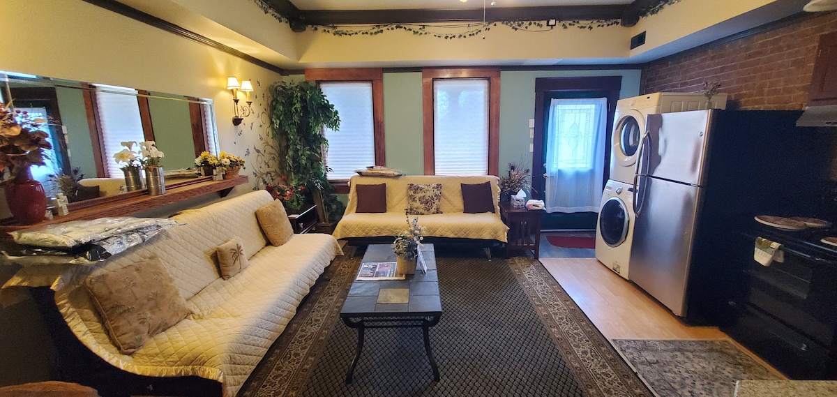 Just steps from Mass Ave, Bottleworks District, coffee shops, local restaurants, galleries, and Indy’s best nightlife. Cozy Studio Layout – Bright, clean, thoughtfully furnished with everything you need. Comfy Queen Bed Fully Equipped Kitchen Smart TV + Fast Wi-Fi Fresh towels and essentials provided. • Mass Ave District (2–5 mins) • Bottleworks • Trendy brunch spots + local coffee • Breweries, night life & live music • Murat Theatre / Old National Centre • City Market, Monument Circle
