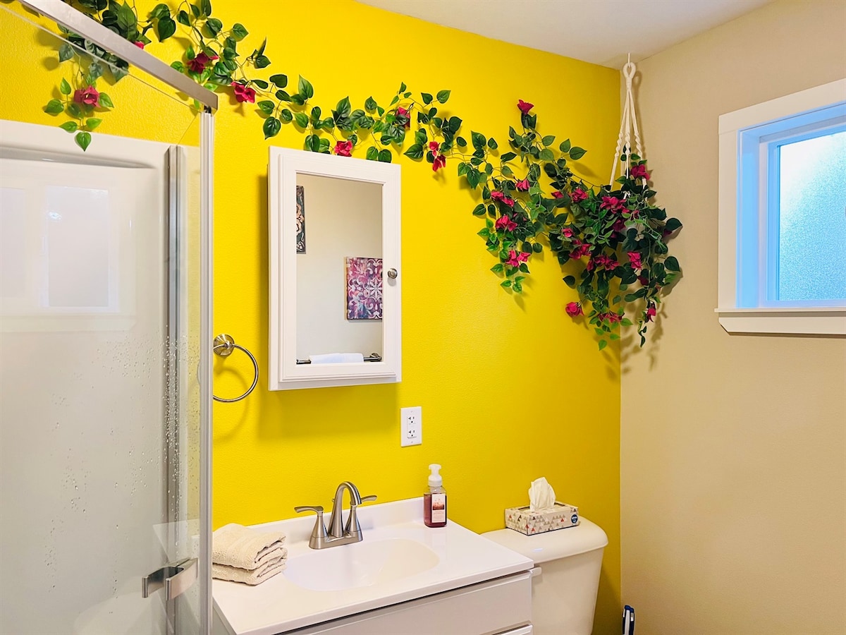 Welcome to a vibrant Mexican-inspired oasis, ideal for traveling professionals! This charming 1-bedroom apartment offers a taste of the tropics with its warm tones and lush plant life, nestled in the heart of the grey Pacific Northwest. • Full Kitchen: Create your own tortillas with the tortilla press. Conventional cookware is in ample supply. • Entertainment: Relax on the loveseat amongst cacti while enjoying the Roku TV • High-Speed Internet: Stay connected above 800 Mbps