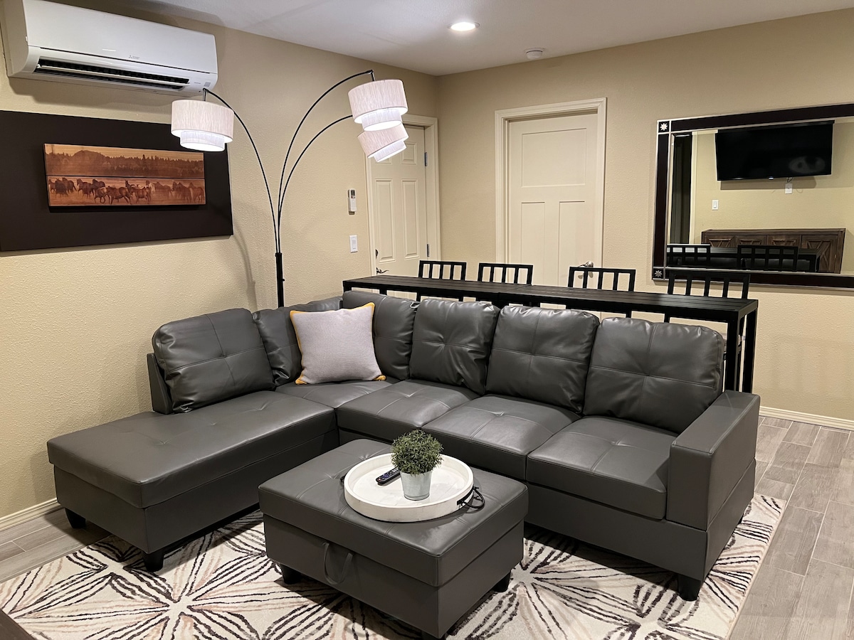 Escape to Oregon Wine Country! Light and bright modern farmhouse style rental . Enjoy a private suite in a detached barn with views of a country setting. King size bed with large Master suite and private patio. Queen size bed in a beautiful 2nd bedroom. Rental has a separate entrance in its own building. A 1800sf family/ rec room. Cozy fireplace, full kitchen, washer and dryer. Outdoor dining table on the patio. Located just one mile from Stoller Family & many more. Owners on site to assist
