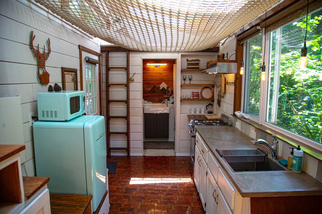 The river is calling you. Recharge your batteries while staying on the river in peace and quiet. 15 minutes to Salem or Independence, 8 minutes to I-5 and wineries! At our 42 ft. 2020 river retreat you can kayak, paddle board, swim, fish, or float to your hearts content. Or sit back on the deck with a glass of wine. The view will wow you! Kids and pets love our fenced turfed area with slide. The bunkhouse floor plan has 2 rooms upstairs and master downstairs. Makes for a great sleepover!