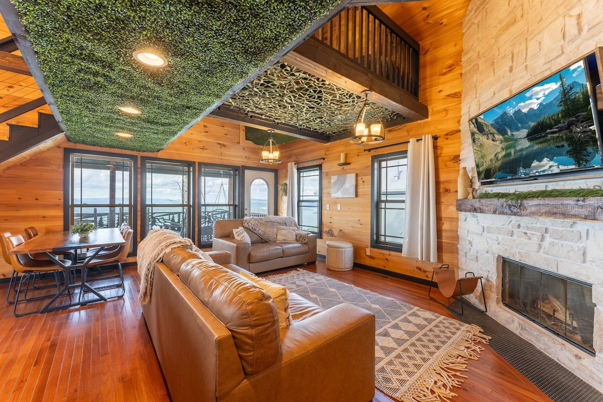 Take it easy at this unique and tranquil getaway home. Our custom built tiny cabin has 744 sq ft of indoor living with two private bedrooms and 2 full baths. The loft is great for kids. Additional amenities include fireplace, dedicated working space and fully stocked kitchen. Outdoor area includes a large deck, fire pit, luxury hot tub and grill. Sits on 2 acres of wooded land & features a community lake down the street. If you have additional guests, ask about our tree house located next door.