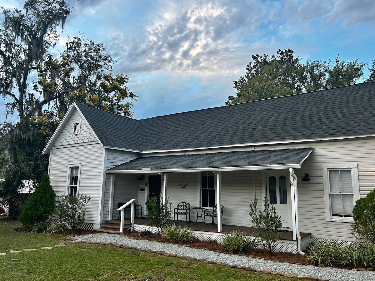 Welcome to our charming farm retreat,perfect for a relaxing getaway.Nestled off a quaint dirt road, our property offers a true escape.2 acres fully fenced from the farm for your privacy,it's ideal for guests with dogs and offers space for evening fires.4miles from WEC, 2miles from FAST and nearby Florida Springs.Enjoy the beauty of our abundant oaks, wildlife and friendly farm animals. Farm tours available.Experience the tranquility and rustic charm of farm life with modern conveniences nearby.