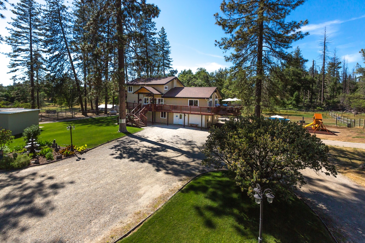 Sierra Ranch is a luxurious mountain house in Mariposa, CA - The Gateway to Yosemite. The back patio boasts stunning views of Yosemite and the Sierra Nevada - inviting you to sit back, relax and breathe in the fresh mountain air. The property includes a fully restored covered bridge, 20 row vineyard, golf practice mat, and BBQ grill. Conveniently located in the historic mining town of Mariposa, the west and south gates of Yosemite National Park are but a short drive away!