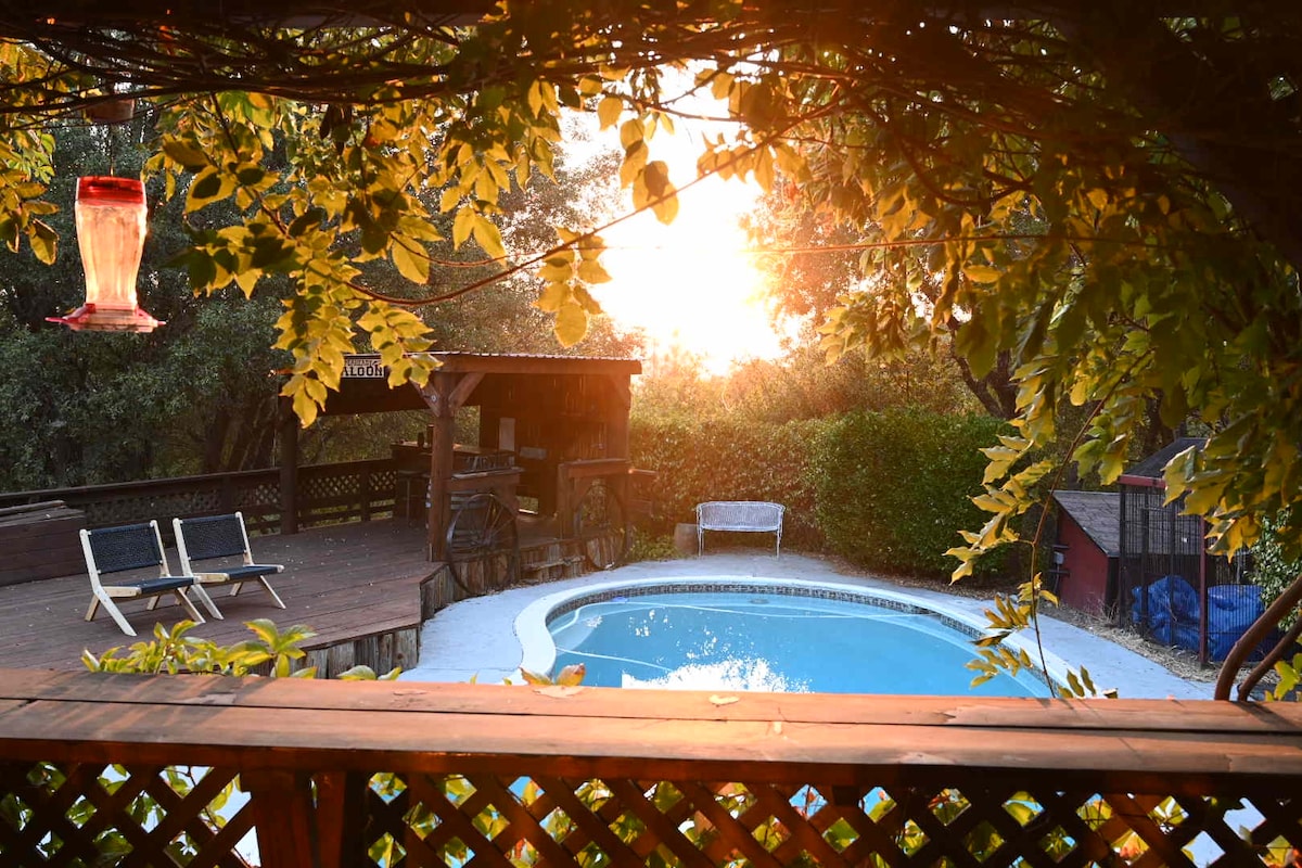 优胜美地私人度假屋~热水浴缸、泳池、狗狗/5英亩