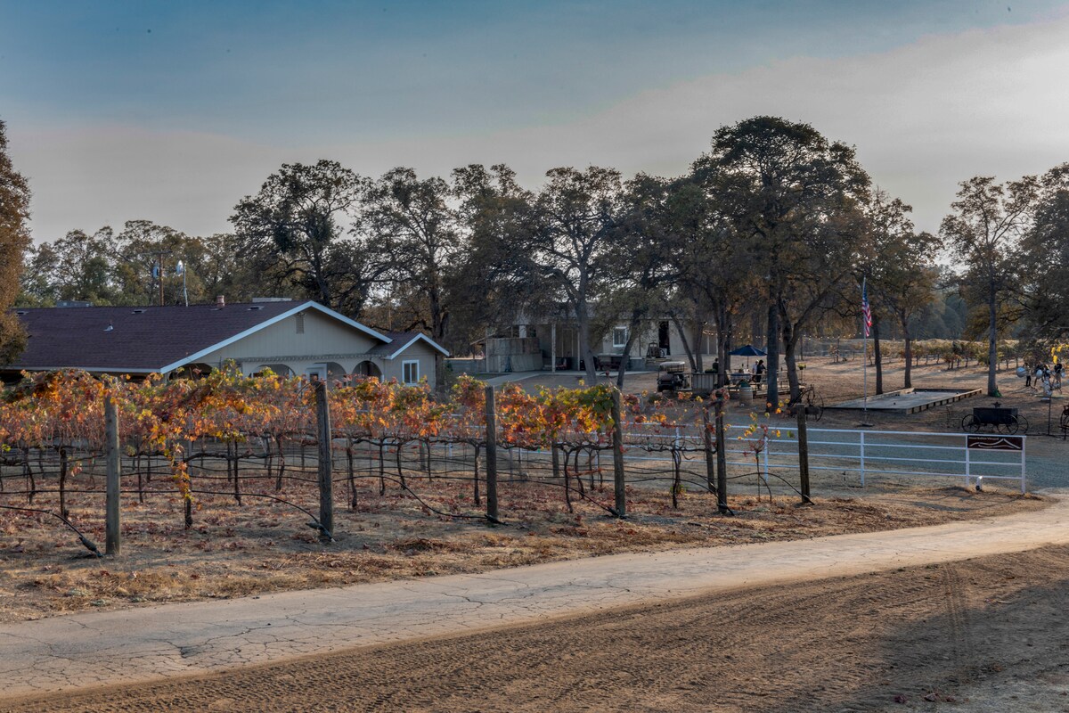 A cozy private cottage nestled on an award-winning family winery and vineyard estate. Amazing sunsets from the deck with access to a picnic area. Enjoy an evening stroll through the vineyard, or play horseshoes and bocce ball to unwind after a long day in Yosemite, 41 miles to Yosemite National Park, and 9 miles to historic downtown Mariposa. Sleeps four people comfortably with a full kitchen. (please note the vineyard is located 9 miles north on HWY 49 from Mariposa. And not as the pin shows)