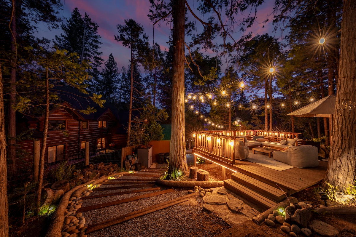 Escape to this romantic secluded retreat, the Lovers Nest, featuring a treehouse-style loft with designer decor. - Immerse in tranquility on 43 acres of forest with private hiking trails. - Enjoy a luxurious and homely atmosphere in a quiet mountainous neighborhood. - Amenities include EV charger and Starlink. - Experience beautiful forest views. - Designed and managed by Casa Oso. - Just 50 mins from Yosemite National Park.