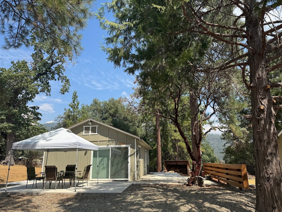 New, clean 2 bed/1 bath home. Surrounded by Ponderosa Pines, this home offers inviting ambiance, with a modern feel. Enjoy a beautiful evening sunset on the porch, just a short distance from Yosemite. A 37 mile, peaceful & scenic, drive along the Merced River to Yosemite. :Electric fireplace, heating/air conditioning, desk/workspace, bbq grill, full bath/shower, instant hot water heater, washer/dryer, outdoor seating, Hot-tub, patio-with table & chairs with tabletop fire-pit