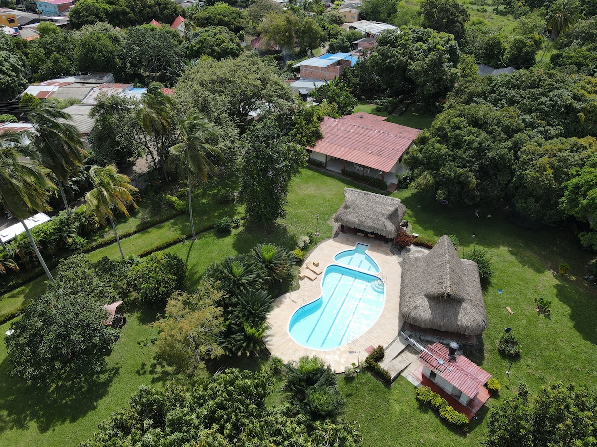 Espacioso paraíso natural a 5 minutos del centro: dos piscinas, cancha de futbol y volleyball, dos kioskos, hamacas, juegos infantiles, cocina equipada, parrillas, TVs, WiFi y estudio para trabajar. Ideal para fines de semana y puentes, reuniones familiares o como base para coronar el mítico Alto de Letras en bicicleta. Hasta para 25 huéspedes:* -6 habitaciones con baño privado, -3 con baño compartido, -5 camas dobles y 15 sencillas. RESERVA YA! *Tarifa extra para más de 16 personas