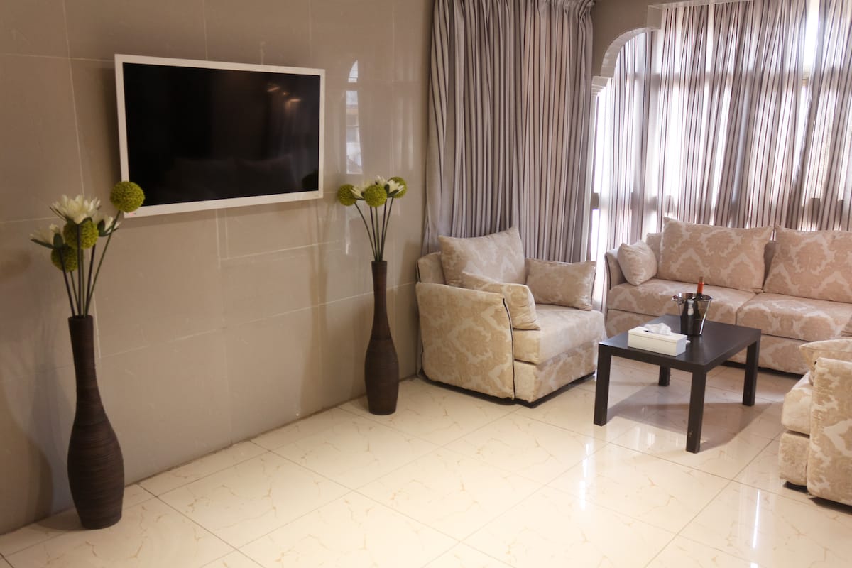 Cher client, nos chambres et appartements allient confort, élégance et modernité. Spacieuses et lumineuses, les chambres offrent des lits de qualité, salles de bain en marbre, et certaines une vue sur la ville ou les jardins. idéals pour les séjours prolongés, disposent d’un salon, d’une cuisine équipée, et parfois d’un balcon. Tous les espaces sont climatisés et dotés de Wi-Fi gratuit. Nous sommes certains que vous y passerez un séjour inoubliable. Au plaisir de vous accueillir