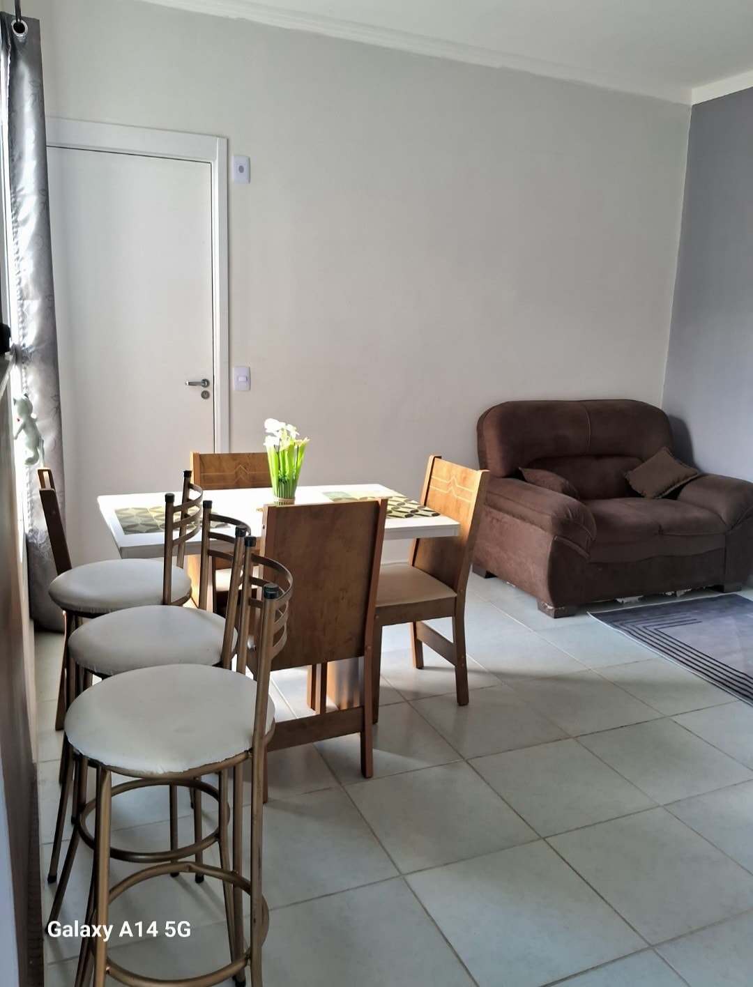 Apartamento no 4° andar com elevador, possui dois quartos sendo um suíte, um banheiro social, sala com televisão, varanda, cozinha equipada, lavanderia, ar condicionado nos quartos, guarda roupa, quarto tem uma bicama de solteiro, tela de proteção em todos os cômodos. O imóvel fica localizado no Quarenta Horas (Coqueiro) perto de supermercados, shoppings, a 12,7 km do Aeroporto Internacional de Belém e a 11 km do HANGAR. O residencial possui conveniência e 1 vaga de garagem descoberta.