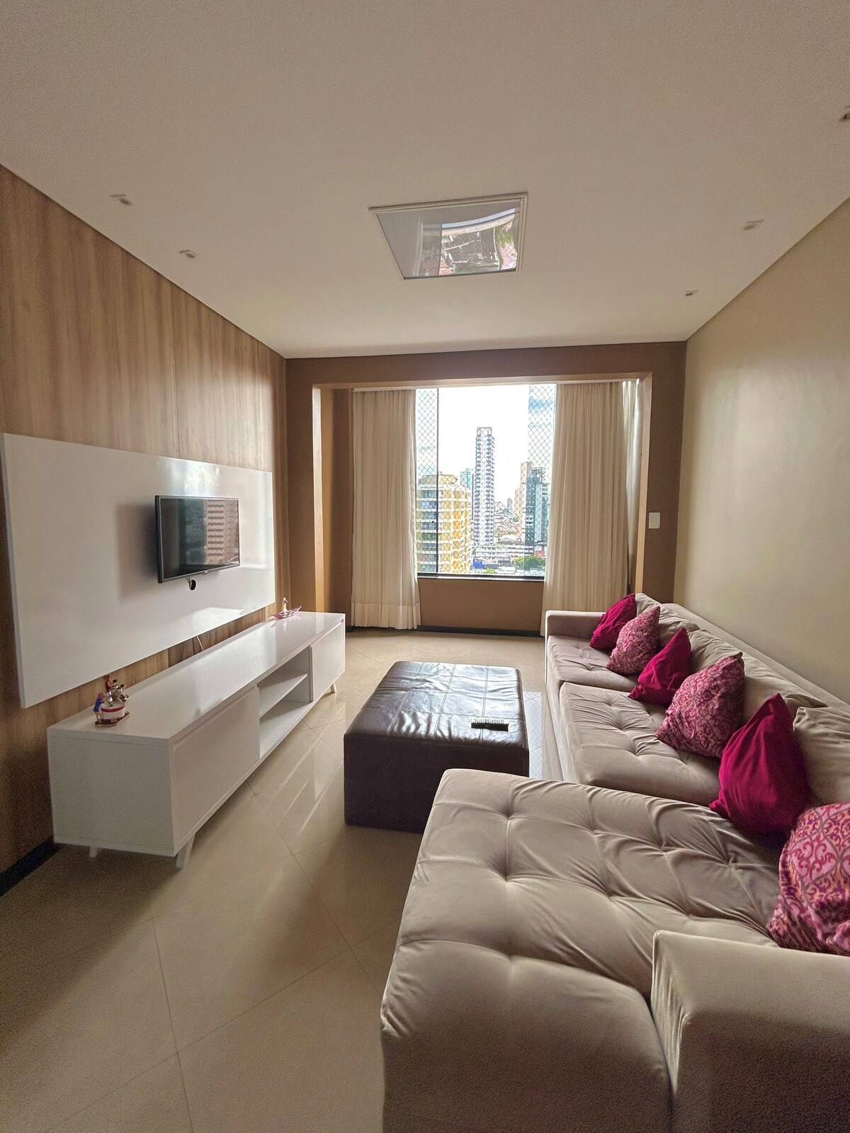 * Possibilidade de disponibilizarmos 4 suítes mediante condições especiais - consultar por mensagem* Apartamento amplo e ventilado, hospeda confortavelmente até 6 pessoas. 3 suítes com central, banheiros com chuveiro elétrico, sala de estar, cozinha e área de serviço e brinquedos. Há vaga de estacionamento no prédio. Situado no bairro Batista Campos, a 5 minutos a pé de supermercado, farmácia e padaria próximos. Fica a 10-15 minutos de carro até o centro da cidade, com shopping e a doca.