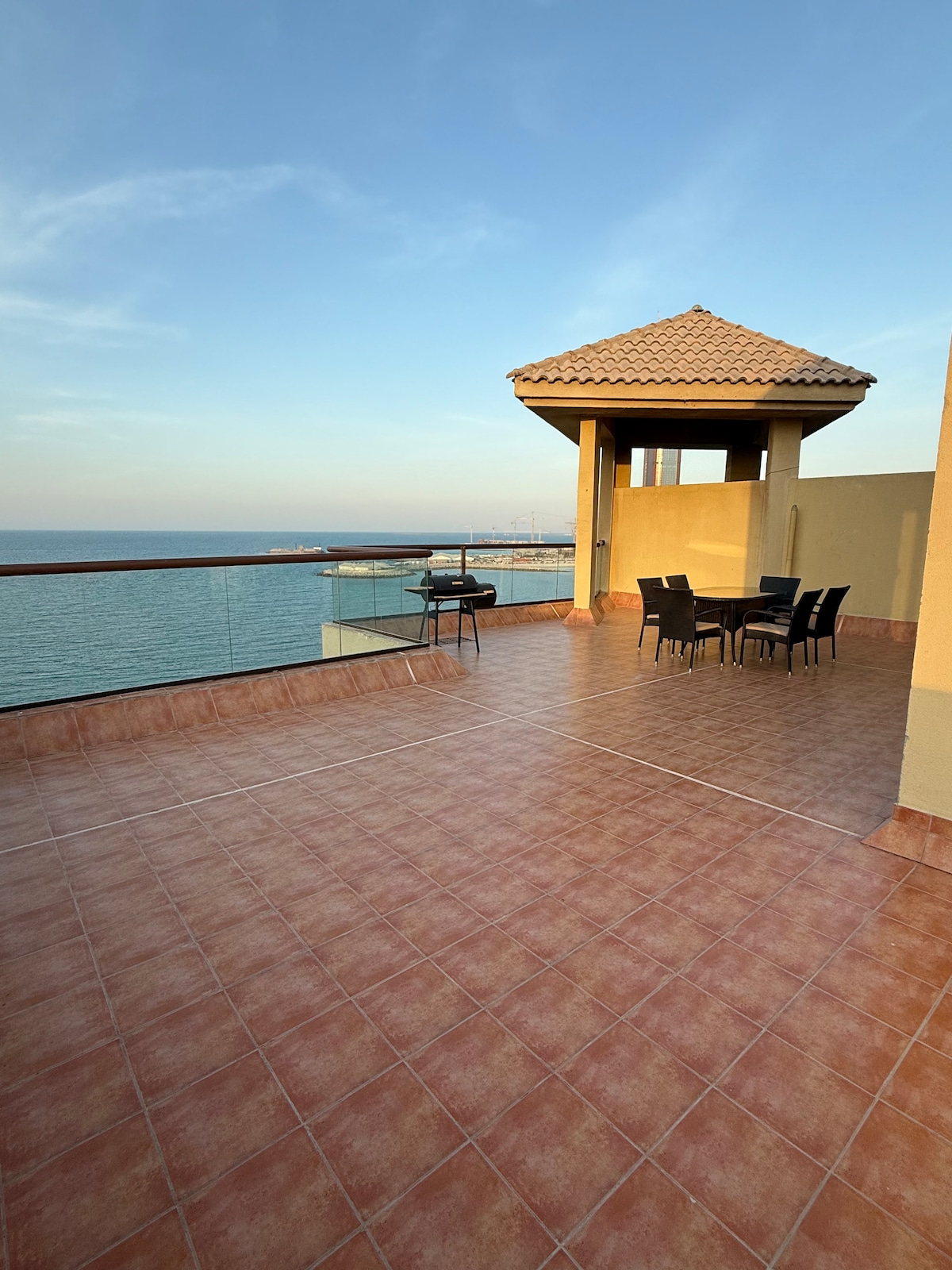 Treat yourself with beach living in this bright studio apartment with terrace and sunset views over the Gulf. Make your meals like back home in well equipped kitchen with all essential cookware and tableware. The building complex has pool, gym, games room and is in walking distance to the beach. You can take a free ferry to 5* hotels and enjoy their bars and restaurants.
