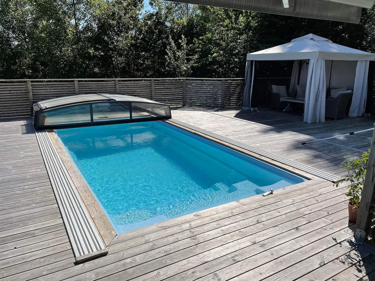 A fully-equipped, spacious villa with beautiful details. Ideal for 1-2 families, it has 4 bedrooms, 2 living rooms, a large open kitchen, glazed dining room, 2 bathrooms, and a laundry room. Outdoors, with jacuzzi, BBQs, a pizza oven, and plenty of seating. Perfect for kids, with lawn, trampoline, and a swing. Its located in Hällingsjö, area surrounded by water&nature (3 min walk to swimming lake). 25 min drive to Liseberg, Göteborg city and the ocean. Welcome!