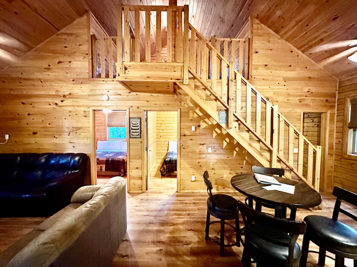 You won’t forget the peaceful surroundings of this rustic destination. Your stay with us is sure to bring you back to simplicity of life while comfortably cozy and relaxed . While TV and WiFi are available , you will find yourself content with viewing the activities of the surroundings and serene atmosphere. Just minutes away you’ll find exciting selections of activities , excellent dining , and friendly small businesses with a wide selection of interest .