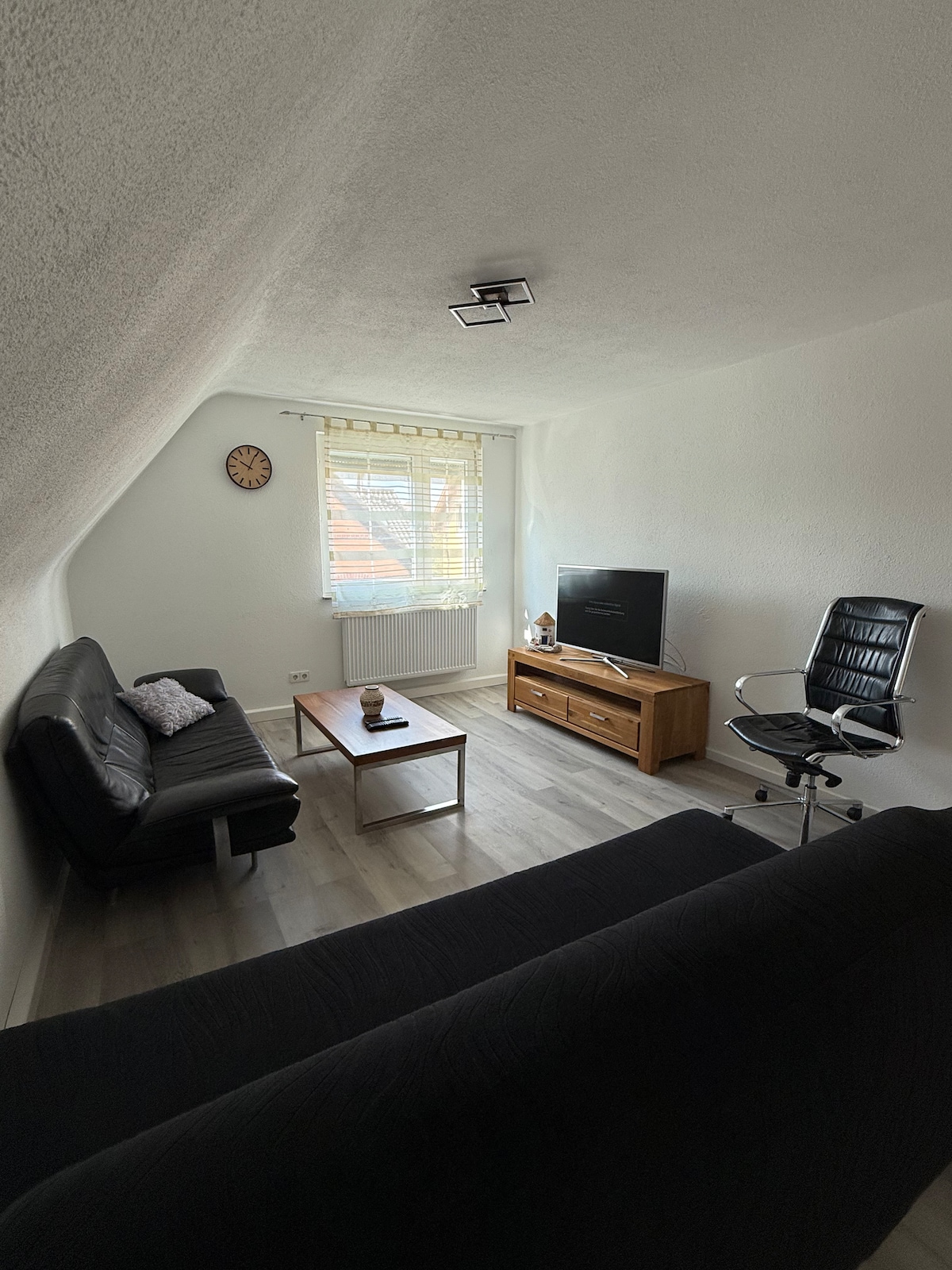Schöne 105 m² Wohnung im 1. Stock mit großen Süd- und Westbalkonen, moderner Küche mit Grundausstattung, gemütlichem Wohn- und Esszimmer. Mit direktem Zugang vom separater Stellplatz vor dem Haus, auf Wunsch mit Elektroauto-Anschluss-Steckdose. In Bahnhof- und Freibadnähe, jedoch trotzdem nicht an einer Durchgangsstraße. Nahe sowohl an schönen Naherholungsgebieten aber andererseits auch zur Autobahn, großen Einkaufszentren und Sport- und Fitnessanlagen. Geeignet für Urlaub oder Geschäftsreisen.
