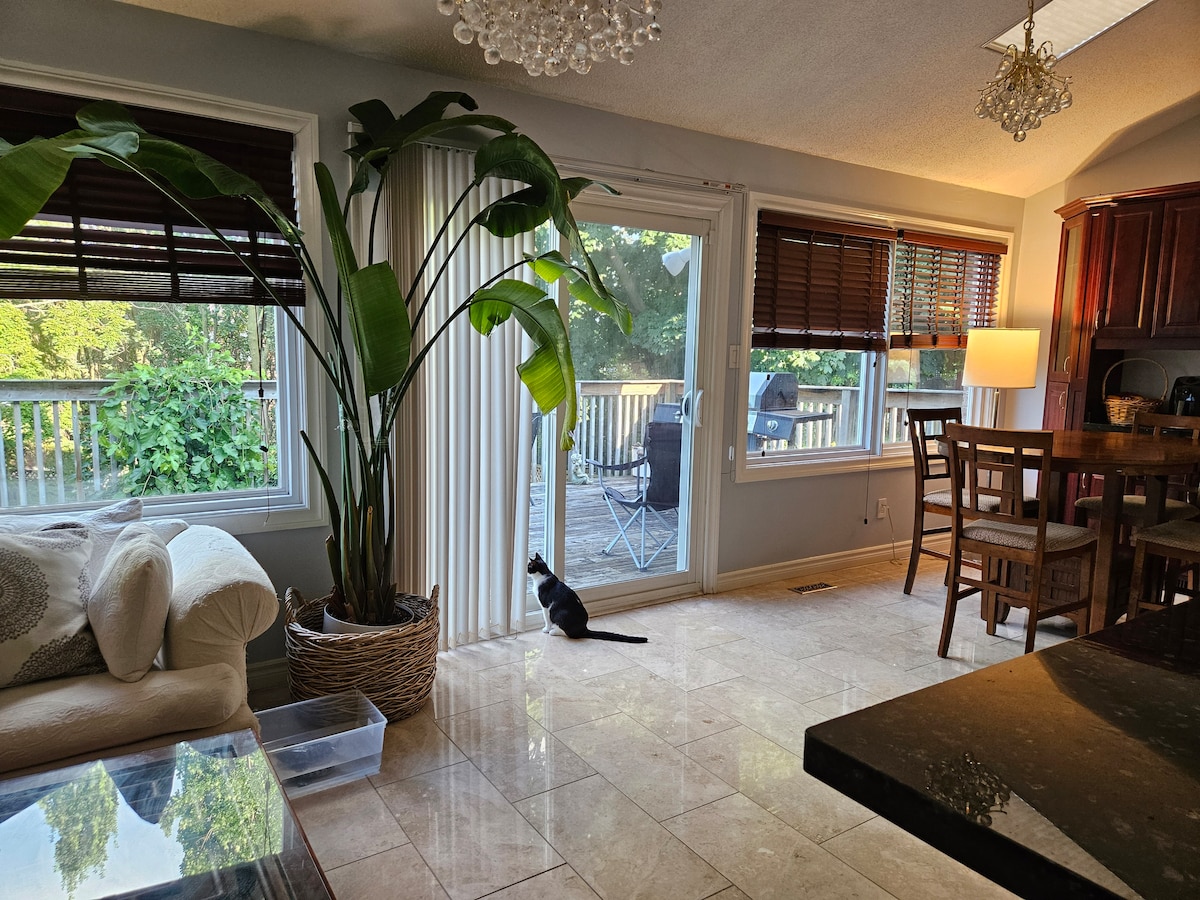 自开业以来一直被评为超赞房东, 排名1%的住宿。 独立入户的地下室套房,完全属于你的居住空间——私密、干净、舒适、便利 公寓位于Bayview Secondary School 的IB课程学区,环境安静怡人,邻居礼貌友善,华人比例超过三分之一,人文环境好。 步行二百米进入Green Park公园,有各种体育设施,野餐桌子一应俱全,漫步小径,斑斓花朵令你流连忘返。 步行三百米即可享用到各种美食,便利店,药店,养生服务设施完备。 步行十分钟可达享誉北美的会员连锁杂货店COSTCO。 驱车三分钟上贯穿南北的动脉404高速直达多伦多市中心,高速同时连接东西高速407,401,尼亚加拉大瀑布,首都渥太华,法语区历史名城蒙特利尔遥遥相望。 独立进出的地下室公寓设施齐全,卧室,客厅,厨房,浴室,卫生间,洗衣做饭,力图为旅途中的你创造舒适的休息环境,加油整备再出发,不留遗憾。 建筑的后院也向客人开放,观赏多姿的小鸟,慵懒的猫咪,夕阳下品一杯茶,与主人聊聊天,说说所见所闻,分享旅途的精彩。 期待你们的到来,有缘千里来相会。