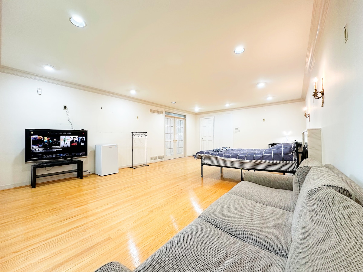 No 3rd party booking! No parties! No visitors! ARRIVING W/ EXTRA GUEST WILL GET CHARGED DOUBLE! Smokers are not welcome! Bright and cozy basement 1 room 1 bathroom, perfect for a comfortable stay. Enjoy high-speed 1Gbps WiFi, a plush queen-sized bed, and closet space. A private living room area with a 43-inch Google TV. A workspace equipped with a desk, lamp and whiteboard, along with thoughtful touches like a fan and essentials on the desk.