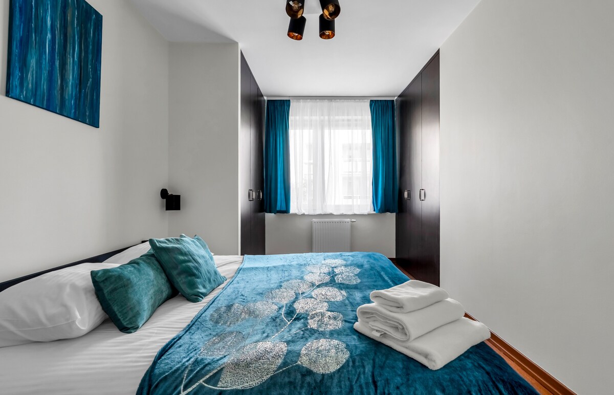 Komfortowy, w pełni wyposażony apartament w nowym budynku. Salon z otwartą kuchnią podzielony na część jadalną i wypoczynkową. W sypialni znajduje się duże łóżko i przestronna szafa. Jest także garderoba jako dodatkowe miejsce do przechowywania. W okolicy znajdują się sklepy, restauracje i kawiarnie Wyposażenie: klimatyzacja, ekspres, czajnik, żelazko, deska do prasowania, pralka Dojazd z Lotniska Chopina 20 min taxi 50 min komunikacja z Lotniska Modlin 50 min taxi 120 min komunikacja