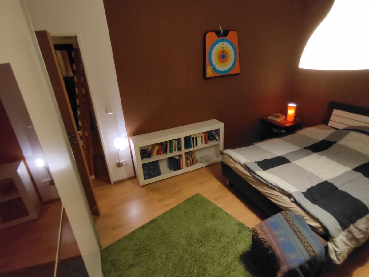 Quiet room in my apartment. The kitchen with all necessary things is free to use. The fridge will provide space for your food. Let's cook together, if you like to. 20 min by car away from airport Cologne/Bonn (CGN), 30 min. by Public Transport away from Cologne Trade Fair AND Lanxess Arena, 20 min. away from Cologne Main Station/Dom - Free Parking on reserved parking lot in the backyard - optionally I could pick you by the train station "S-Bahn Köln Dellbrück". - Supermarket: 5 min by foot