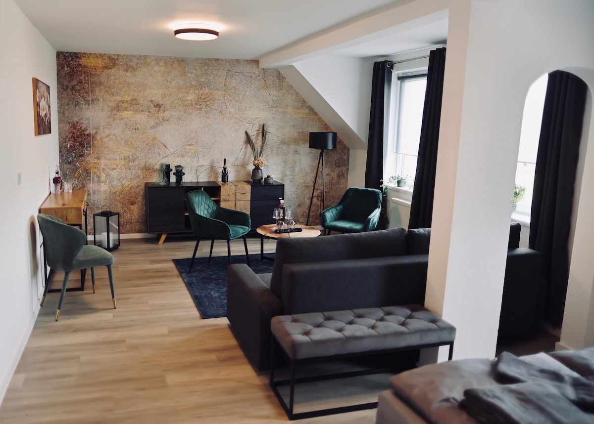 Willkommen in deiner hellen,liebevoll eingerichteten Maisonette nahe des Cospudener Sees.Dein gemütlicher Rückzugsort für den Winter. Die großzügige Wohnung im 4. OG(ohne Aufzug)bietet viel Licht und Ruhe auf zwei Ebenen.Nach Spaziergängen durchs Neuseenland lädt das große Wohnzimmer zum Entspannen ein.Ideal für Paare und Familien,die Wärme,Erholung und Inspiration suchen–mit schnellem WLAN und Tiefgaragenplatz.Nur 15 Minuten mit der S-Bahn nach Leipzig,mit Cafés,Kultur und Lichtern der Stadt.