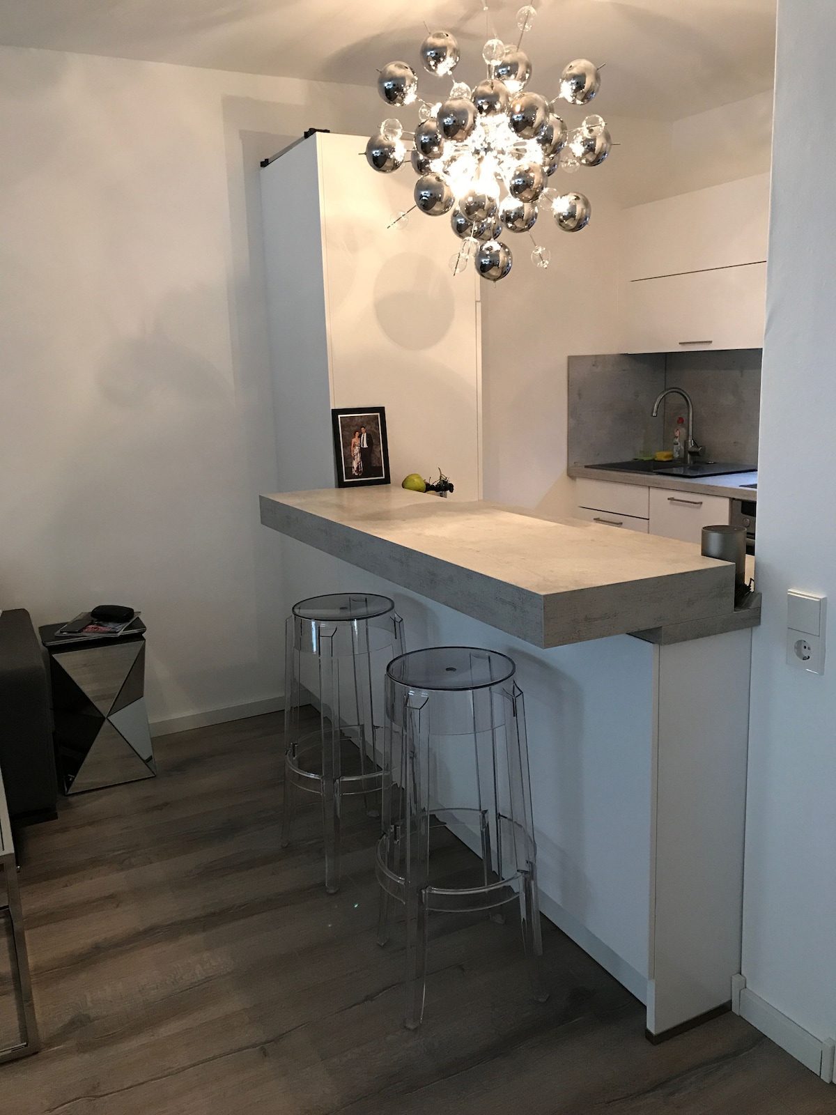 Die lichtdurchflutete Wohnung ist neu renoviert und möbliert. Das Wohn- und Schlafzimmer verfügt neben einem großen Kingsize-Bett (180cm), ein heimkinoreifes 58" großes 4k-Smart-TV mit Netflix und Amazon Prime Zugang, einen Arbeitstisch, ein Kleiderschrank und ein Sofa. Zudem gibt es eine Küche mit voller Ausstattung inkl. Waschmaschine und ein komplett neu saniertes Bad mit Dusche. Der Balkon eignet sich für ein entspanntes Ausklingeln lassen eines sonnigen Tages.