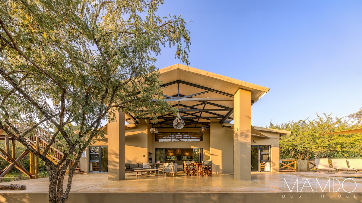 Birdsong is a private, self-catered, and solar-powered house in a wildlife conservancy adjoining Kruger National Park. Relax on the downstairs outdoor lounge with heated pool as zebra, kudu, and many others stop by to visit. Watch the sun set from the hammock on the upper patio. Exercise in the gym space. And if you just can't get away from work, there is a large table upstairs with a beautiful video background! Birdsong is just 15 minutes from Kruger's Crocodile Bridge gate.